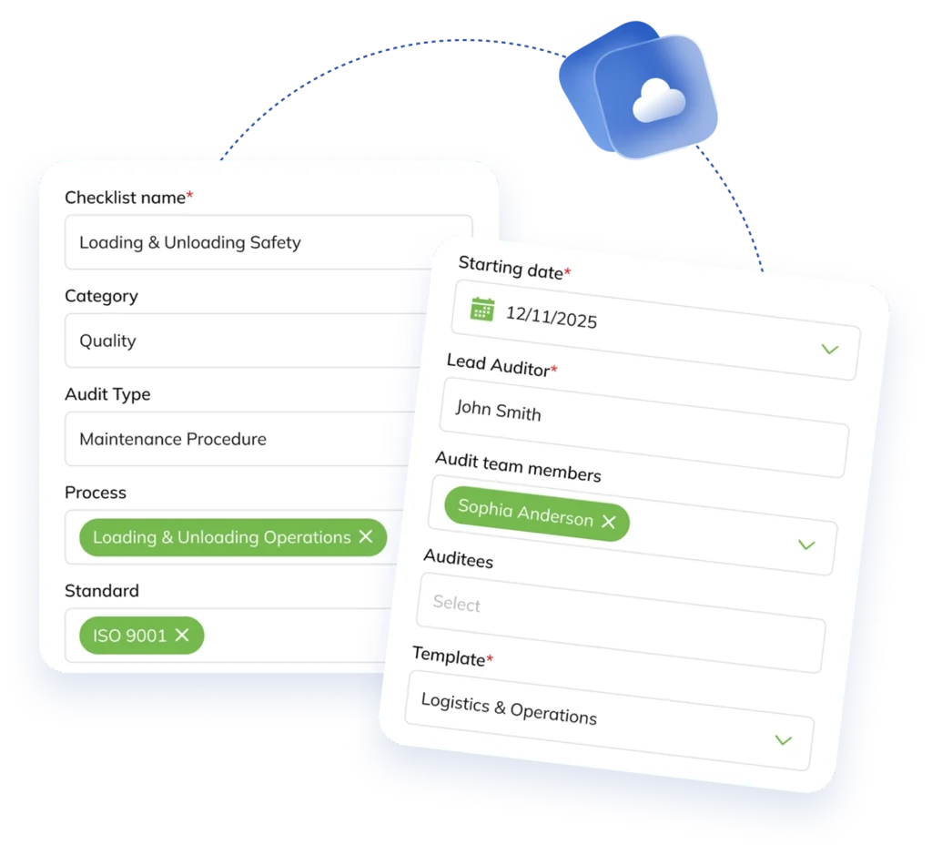 No matter your industry or specific requirements, our Checklist Module offers unmatched flexibility. Define templates, categories, standards (e.g. ISO 9001, ISO 45001, ISO 22000), processes, and types to tailor each checklist to your exact needs.