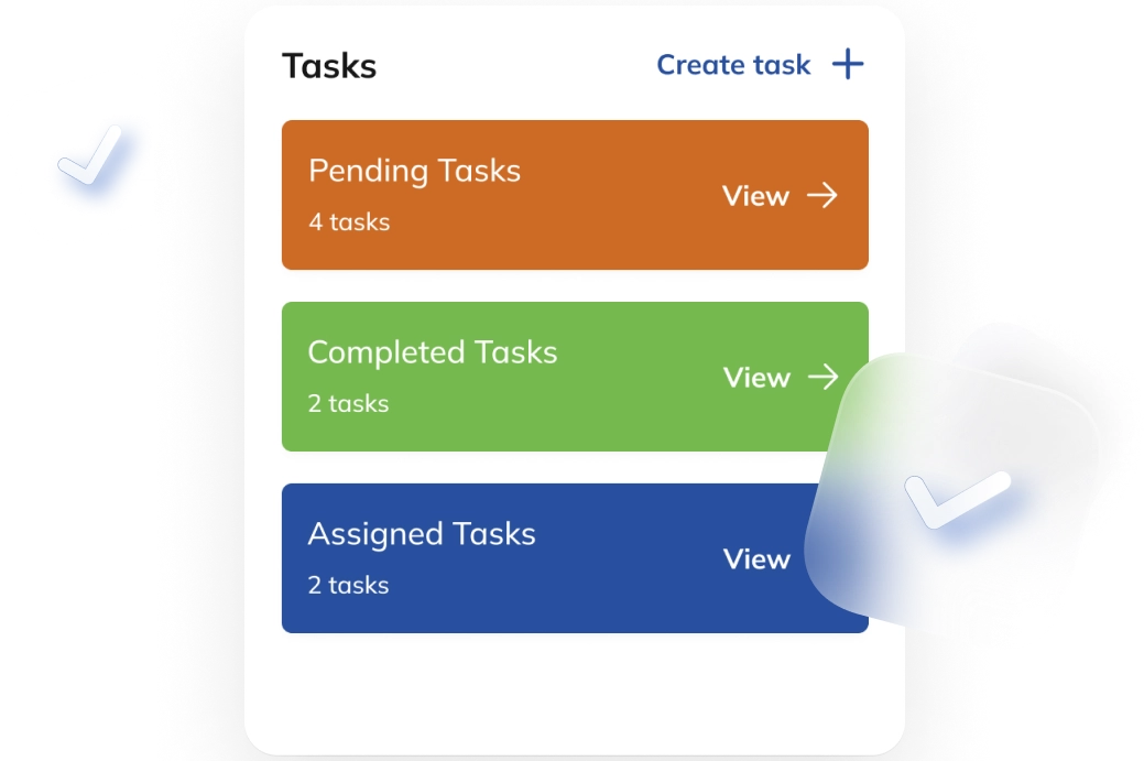 Designed to streamline your workflow, our task module enables you to instantly create tasks ensuring no follow-up action is missed. Keep all your tasks organized in one place, easily prioritize, assign, and track progress, and enhance accountability across your team.